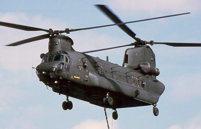 Chinook HC2 ZA708, 18 Squadron, Stanford Battle Area 1995.